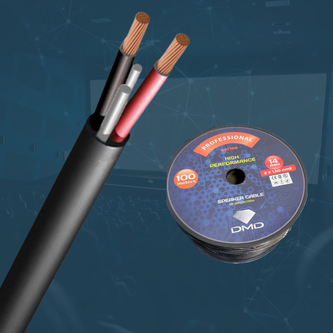 Bobina PP com condutores de cobre nobre (CCA), insuladores de polietileno e capa em PVC preta de alta qualidade. Cabo super flexível, polarizado e metrificado. Disponível em 2 x 1,50mm² (14AWG) e 2 x 2,50mm² (10AWG)