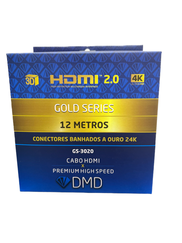 HDMI 2.0: Transferência de até 18 Gbps, compatível com versões anteriores. Suporta imagem 3D, aplicação IP acima de 100 Mbps, retorno de áudio, vídeo 4K a 60 fps (2160p), áudio digital até 32 canais a 1536 KHz, formato 21:9 e conectores banhados a ouro 24K.